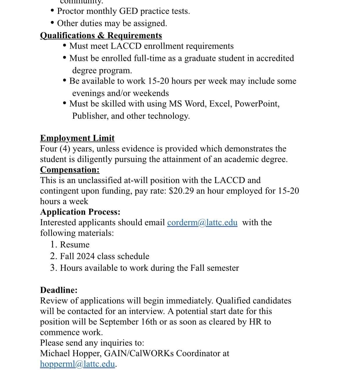 The ideal candidate performs a variety of paraprofessional duties related to their course of strudy at the college or university they are attending in support of the staff in charge. Duties may entail answering telephones, emails, follow up with students, assistance with resources, etc. Successful candidates will have strong listening, organizational, presentation, and research skills.